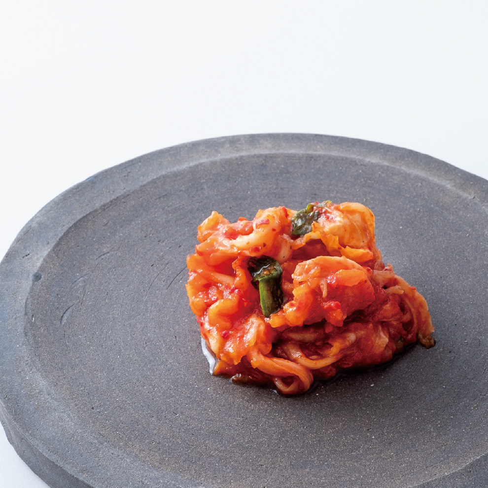 国内で育った元気いっぱいの白菜に、塩漬け鰯やアミエビの魚醤、昆布から取った出汁、 その他こだわりの食材たちと漬け込んだ毎日食べて頂きたい“生きてるキムチ”です。